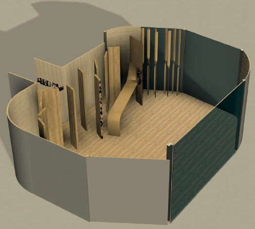Ainsi, le bois, matériau ancestral mais surtout matériau d’avenir, nous a semblé être le candidat idéal pour devenir un élément identitaire, distinctif d’une forme d’art dont l’exposition complexe est trop souvent négligée : les arts vidéo.