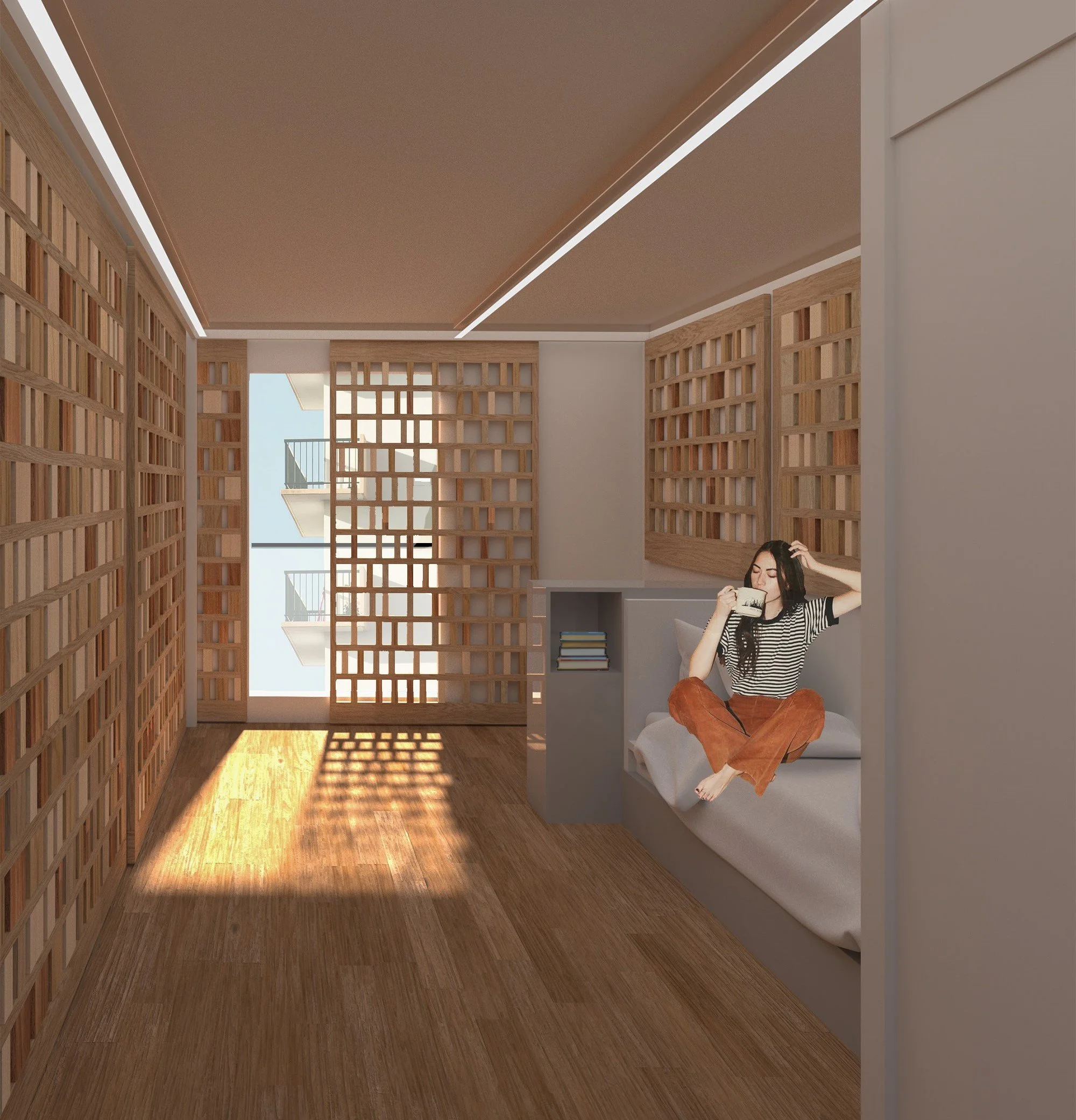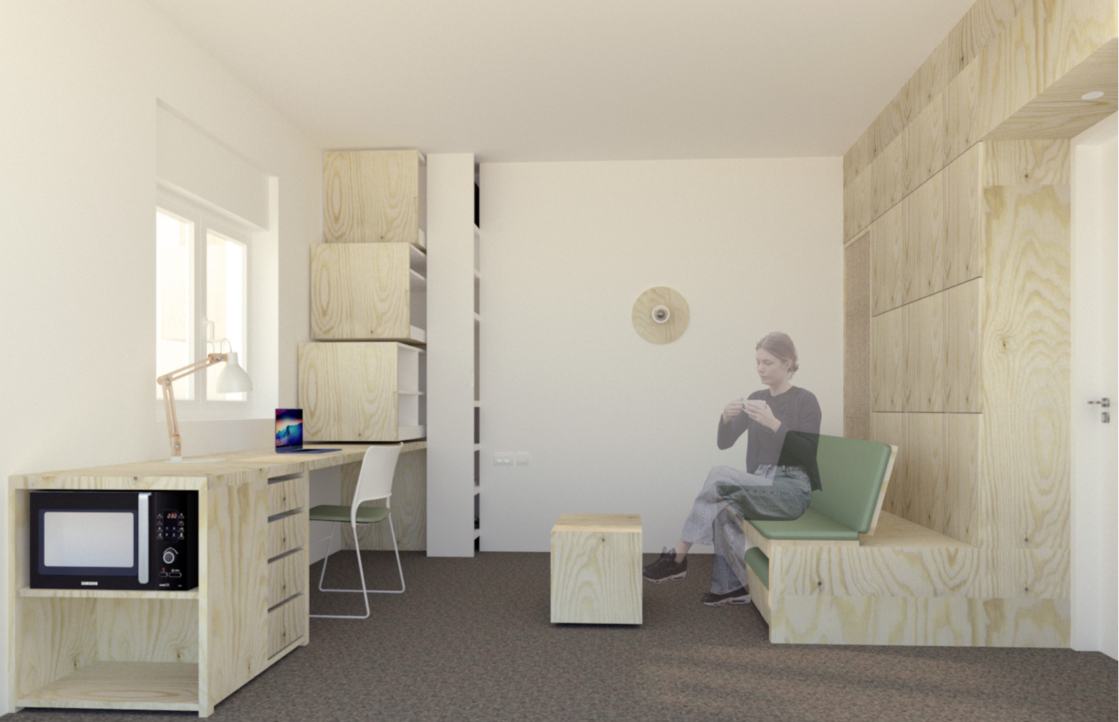 Comment l’espace de la chambre peut se moduler et se transformer afin de répondre aux différents besoins de l’habitant ? Comment réutiliser les matériaux, comment se servir de l’espace et du mobilier modulable pour aménager et réaménager à l’infini, sans gâchis ? Il faudra donc axer les projets sur le DURABLE et la MODULARITE de l’espace.